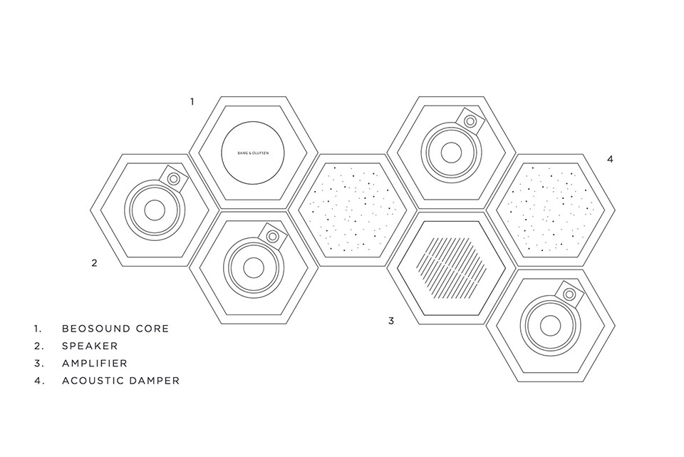 Người dùng có thể bắt đầu trải nghiệm của mình bằng việc tự thiết kế hệ thống loa BeoSound Shape của riêng mình với công cụ thiết kế trực tuyến từ Bang & Olufsen. Công cụ cho phép lựa chọn màu sắc các mảng lục giác đơn lẻ, kết hợp chúng với nhau theo hình khối yêu thích và sắp đặt các thiết bị (loa, âm ly, Beosound core, damper) sao cho hệ thống đạt hiệu quả âm thanh tối ưu. Hệ thống BeoSound Shape có thể kết hợp số lượng loa lên đến 44 chiếc loa cùng với 11 ampli được điều khiển qua một module trung tâm (core). Từng hệ thống loa với ampli (4 loa một ampli) được kết nối không dây thông qua Bluetooth, Wi-Fi, hỗ trợ Apple AirPlay và Google Cast, tương thích với việc phát nhạc nhiều phòng (multiroom) của B&O. Ngoài ra, người dùng có thể trang trí bằng những tấm đệm vải có tác dụng tán âm, tiêu âm nhằm cải thiện chất lượng khi nghe âm thanh cho phù hợp với vị trí lắp đặt của loa.