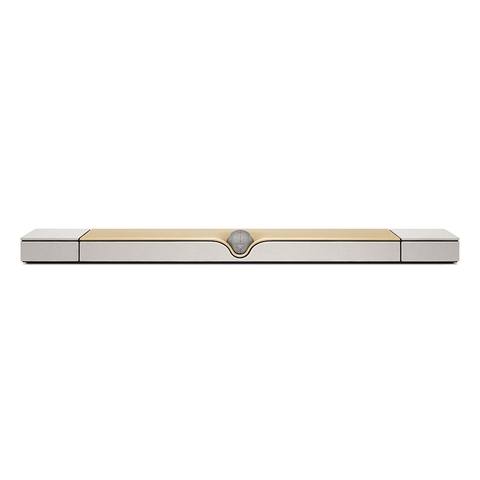Một trong những điểm ấn tượng làm nổi bật thanh loa này chính là nằm ở con quay hồi chuyển ORB nổi bật. Thiết kế độc đáo này vừa đảm bảo tính thẩm mỹ đặc trưng của thương hiệu loa Hi-end nước Pháp, vừa là kênh trung tâm, vừa có thể xác định vị trí của loa để tự động điều chỉnh âm thanh phù hợp với không gian, tăng cường hiệu ứng đa chiều.