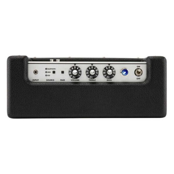 Phía trên đầu loa là một cổng aux-in 3.5mm, một công tắc nguồn, đèn báo tín hiệu màu xanh và một nút để thay đổi nguồn phát giữa bluetooth, mini và RCA. Bên cạnh đó là các núm xoay điều chỉnh volume, bass, treble được thiết kế theo kiểu retro. Mặt sau loa là cổng kết nối RCA stereo và một cổng để cắm adapter cấp nguồn cho loa.