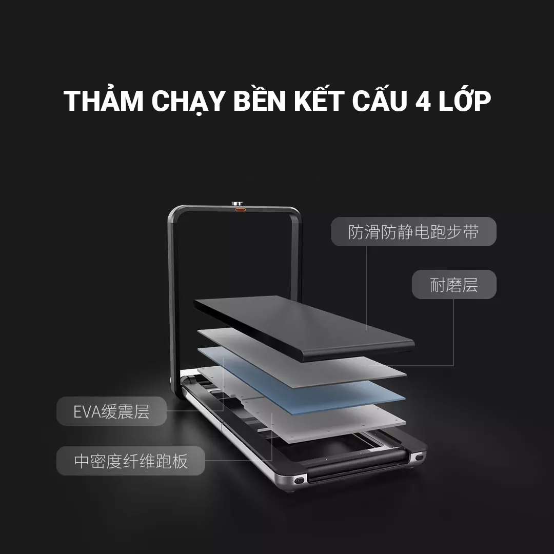 Đặc biệt, máy chạy bộ còn được trang bị cấu trúc 4 lớp chạy chuyên nghiệp với phần khu vực chạy được thiết kế khá rộng rãi giúp người dùng luyện tập thể thao thoải mái và an toàn hơn.