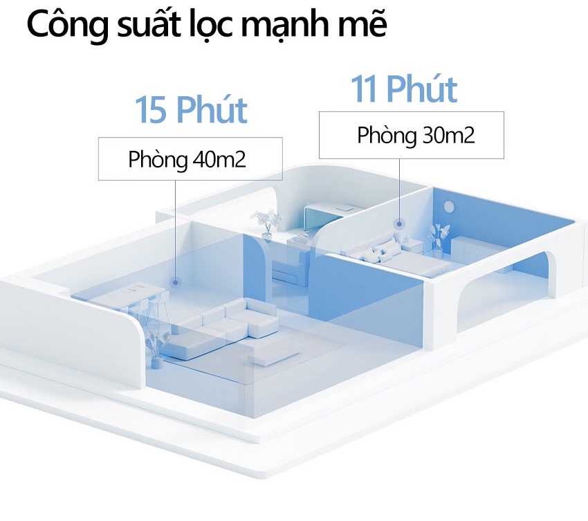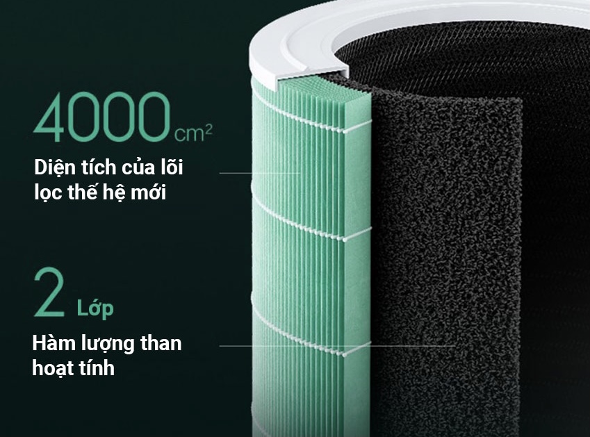 Bộ lọc sử dụng là bộ lọc HEPA 5 lớp kích thước lớn, diện tích 4000 cm2, lớp than hoạt tính cho hiệu quả lọc đến 99.99% các hạt có kích thước nhỏ cỡ 0.3µm, formaldehyd, toluene, lông thú, phấn hoa, vi khuẩn, khói thuốc lá, mùi hôi…